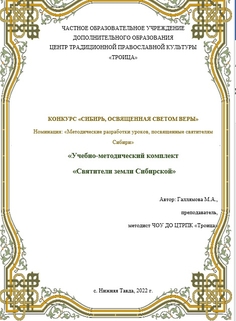 УМК содержит: 5 методических разработок уроков, содержащих: описание каждого урока, технологическую карту урока, приложения в качестве раздаточного материала для работы на уроке, демонстрационную презентацию к уроку, комплект заданий для закрепления изученного материала дома, ссылки на видео – сюжеты о святителях Сибирской земли разных периодов истории Тобольско-Тюменской епархии.