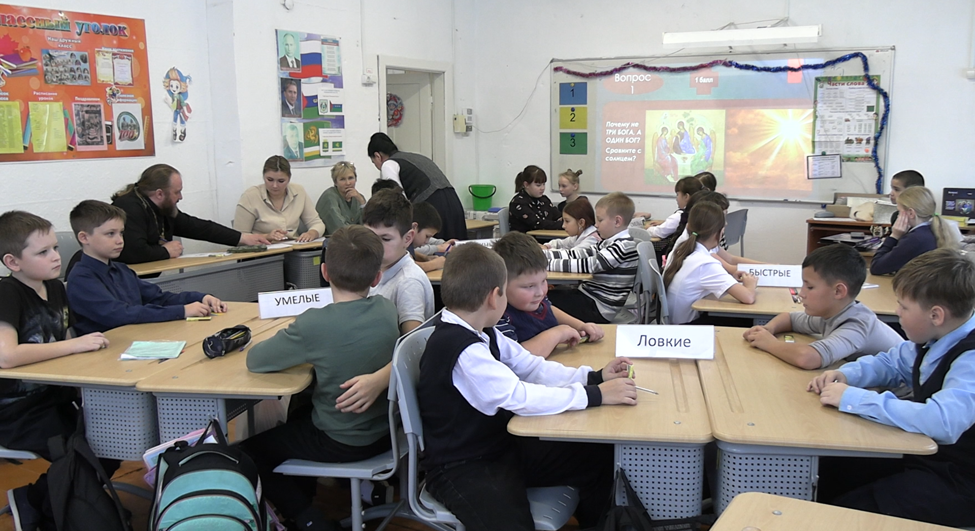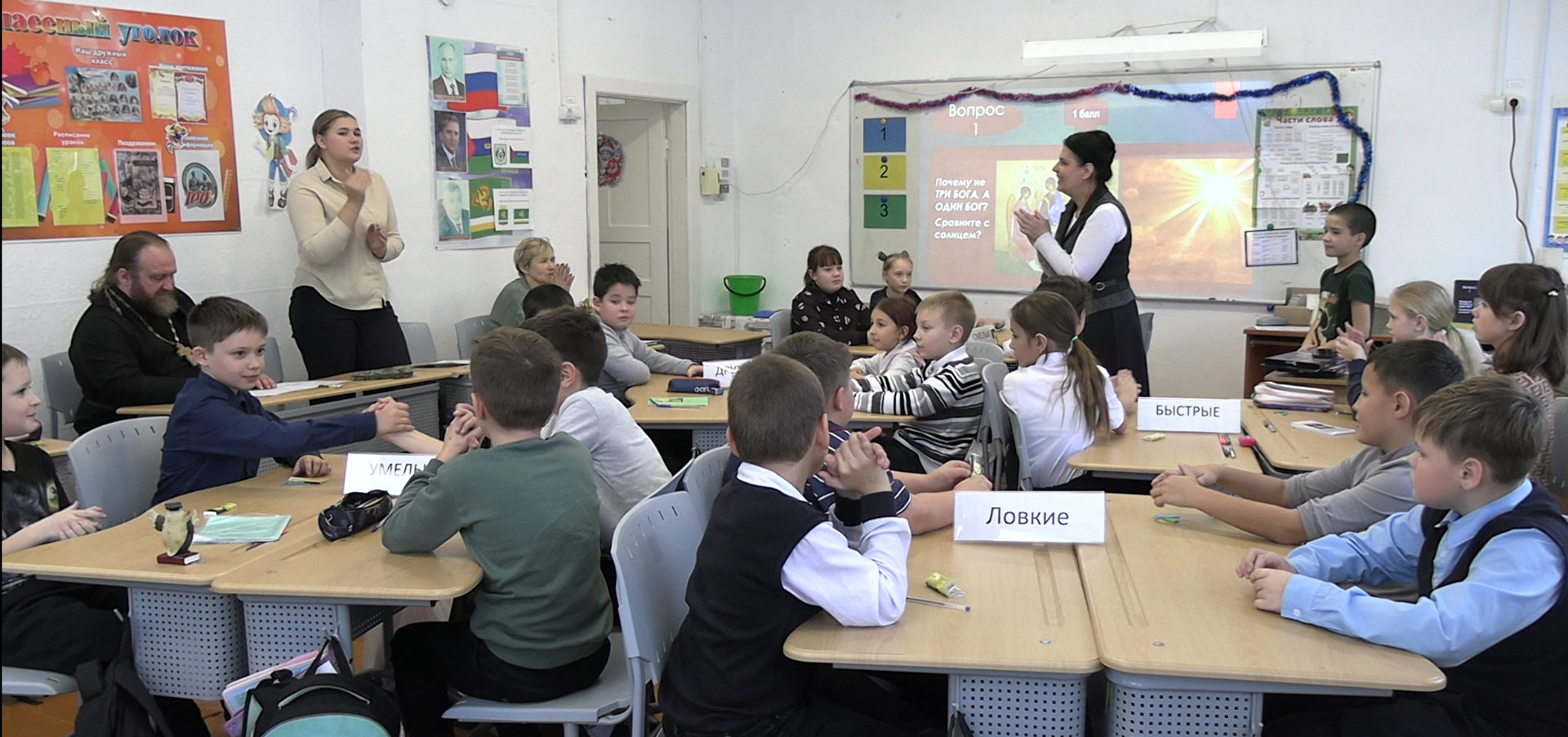 Игра "Что? Где? Когда?" является средством контроля знаний, усвоенных детьми в течение 1-ой четверти 2023г. В игре приняли участие 5 команд 4д класса. Команды получили название "Ловкие", "Быстрые", "Смелые", "Умелые" и "Дружные". Игра прошла по 7 основным темам, которые дети изучали в течение семи занятий. Это 1. "Россия - моя Родина", 2. "Культура и религия", 3. "Как христианство пришло на Русь", 4. "Бог, мир, человек", 5. "Библия", 6. "Ошибка первых людей", 7. "Вдали от рая".
