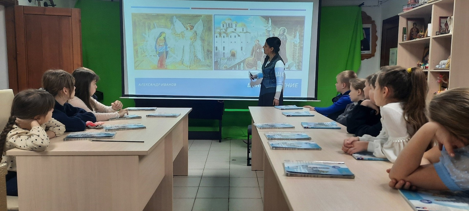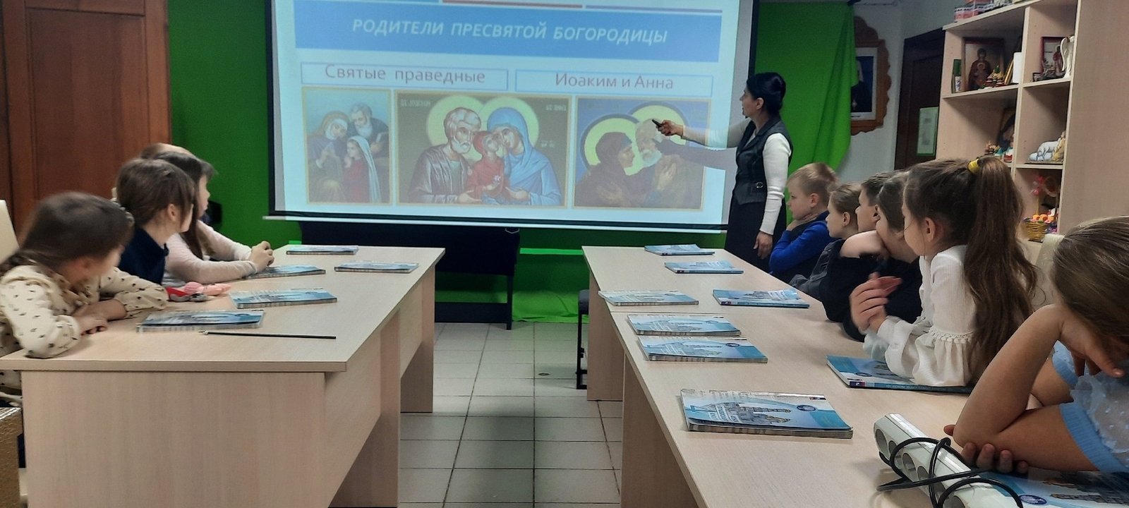 На занятии дети узнали зачем девушке Марии явился ангел, для чего родился Иисус Христос, а также о том, что от выбора Марии, который она сделала самостоятельно, благодаря своей свободной воле, зависела судьба всего человечества. Дети узнали о традициях праздников Благовещения и Рождества Христова.