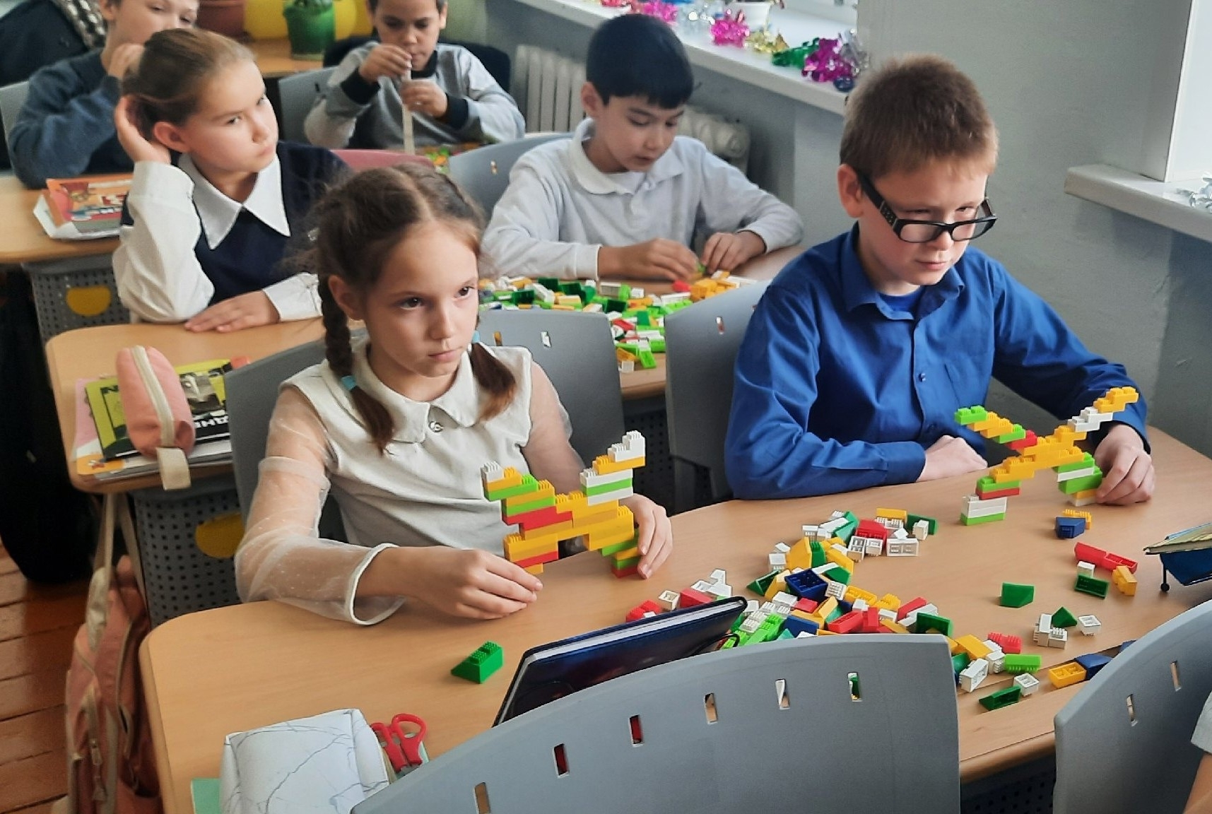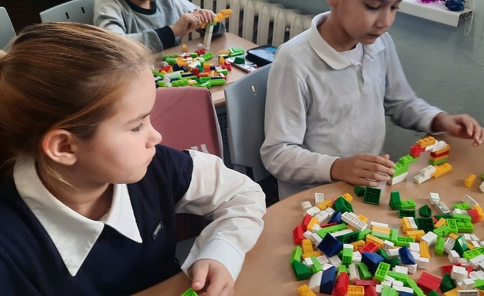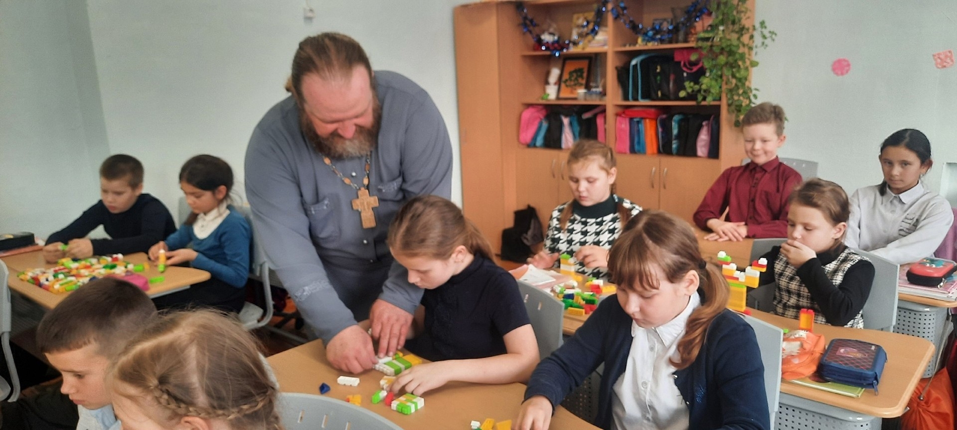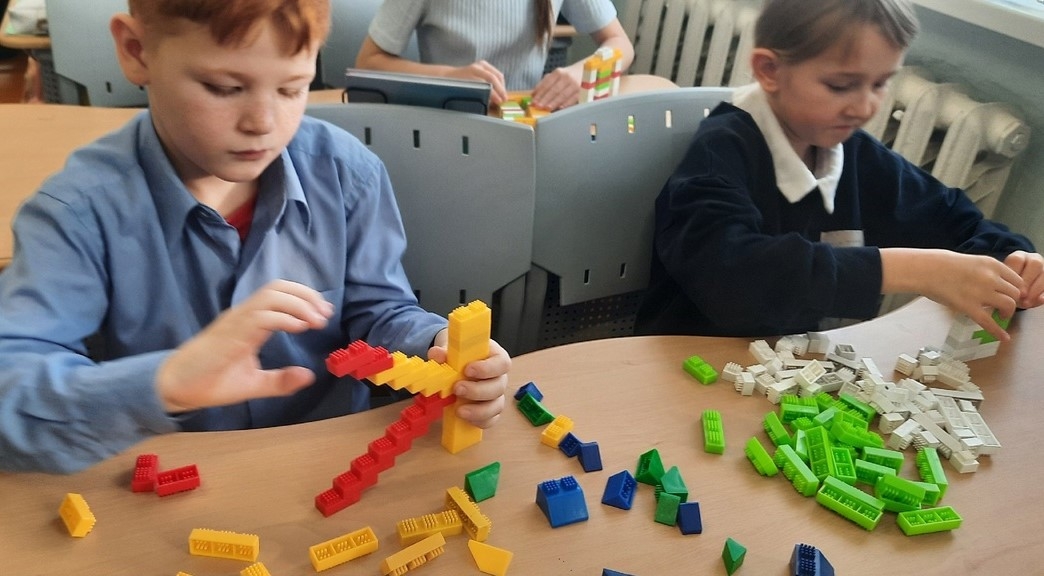 На занятии дети конструировали церковно славянские буквы
