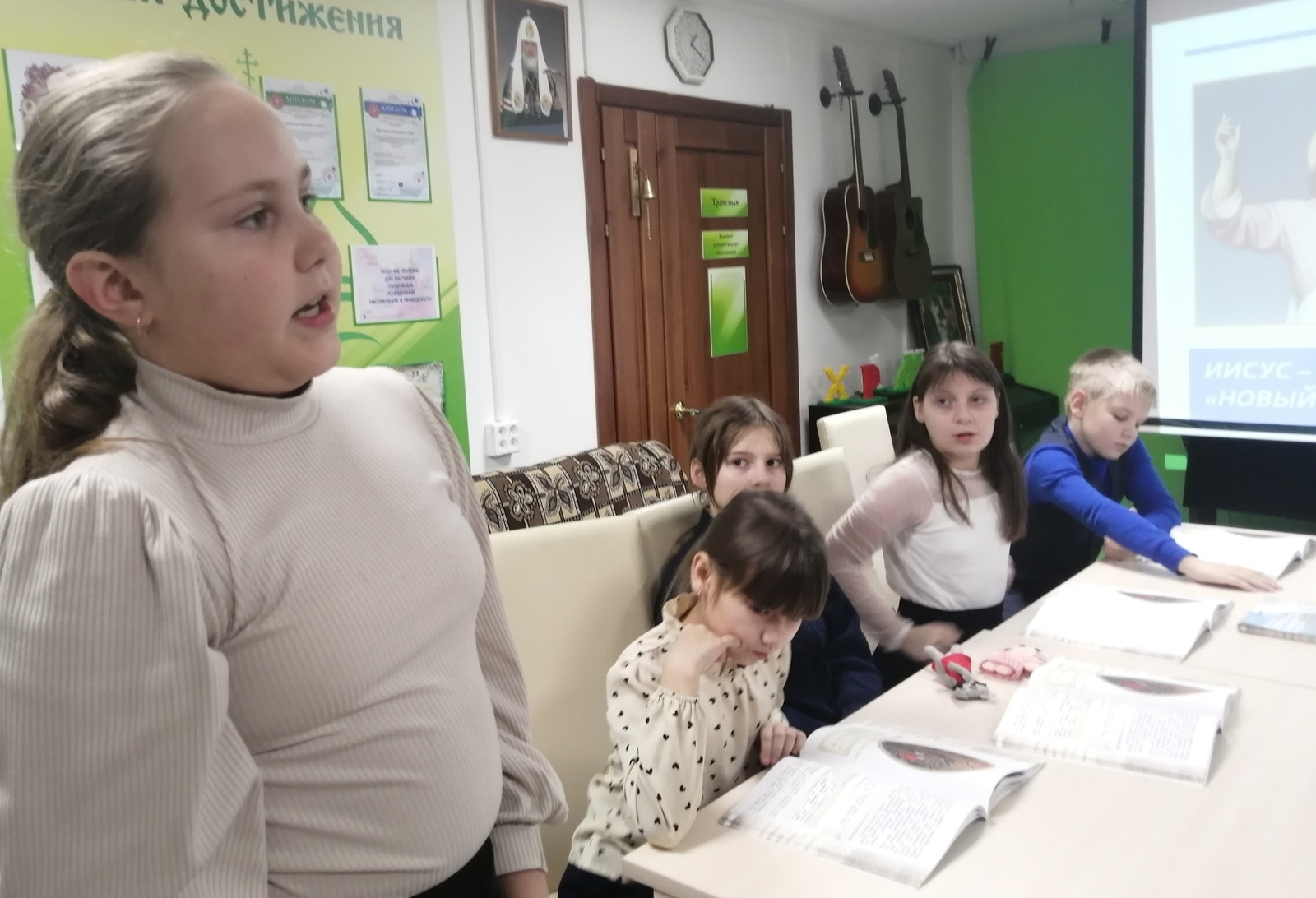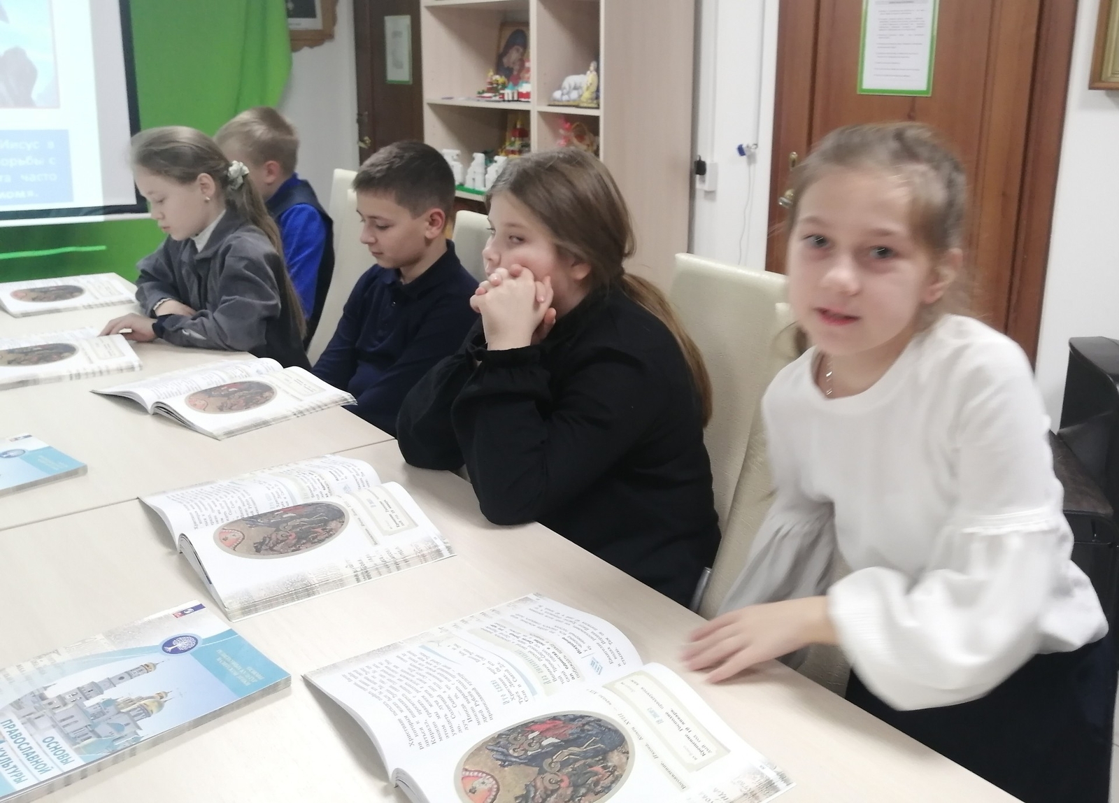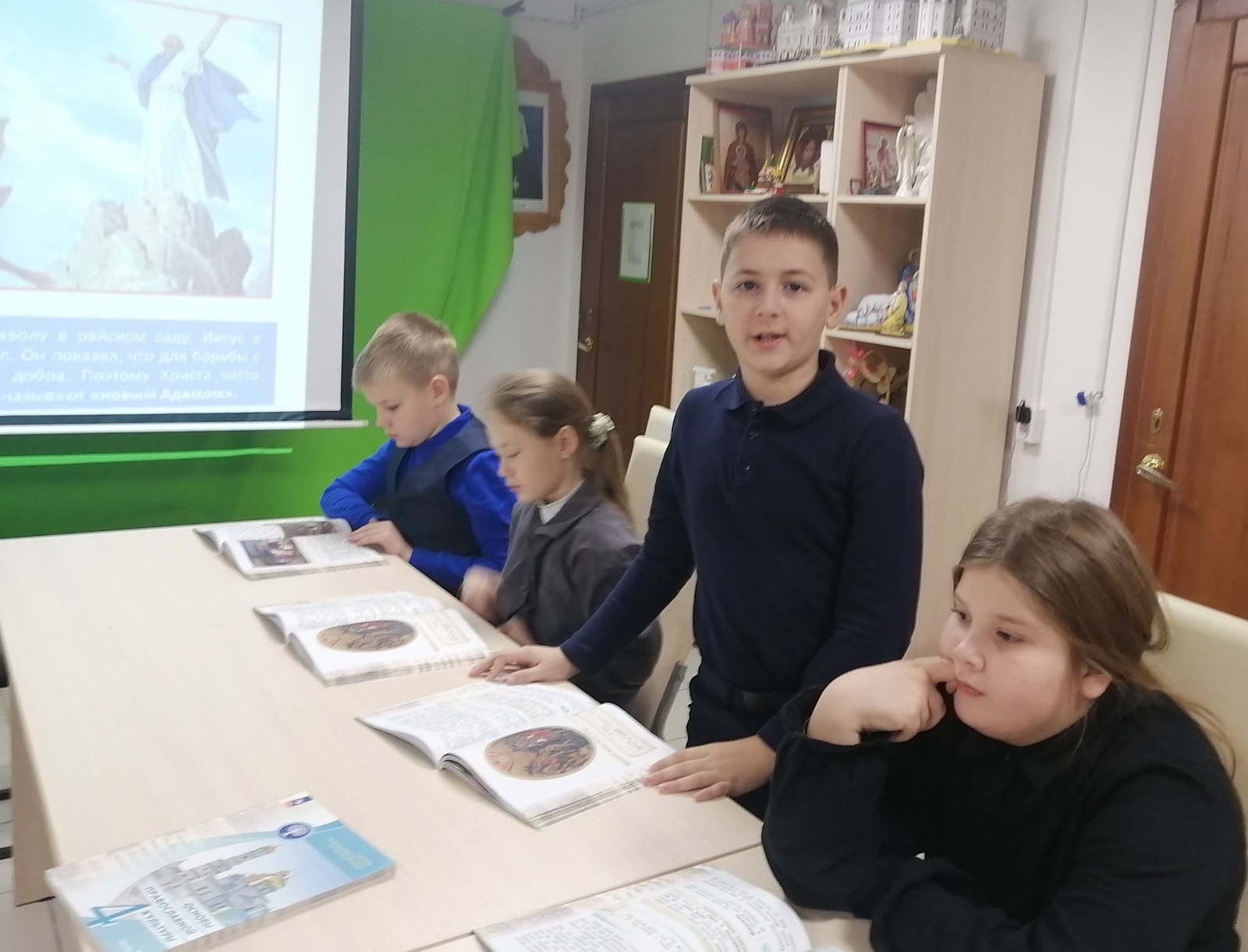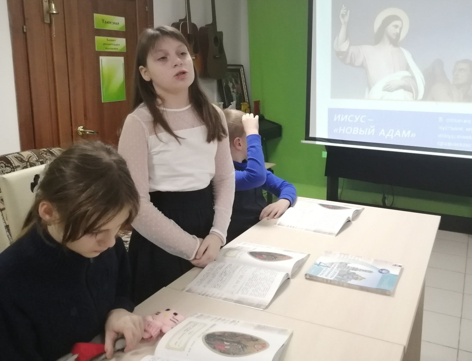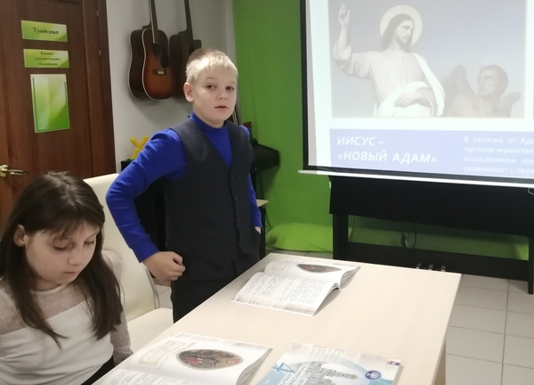 На занятии дети искали ответы на вопросы - какое событие называется Богоявлением, кого христиане называют Троицей, кто автор знаменитой иконы "Троица", почему Иисуса Христа называют "новым Адамом"?