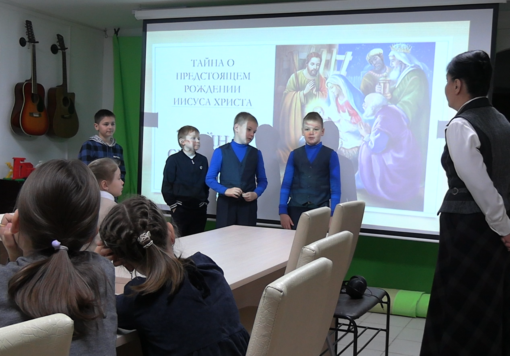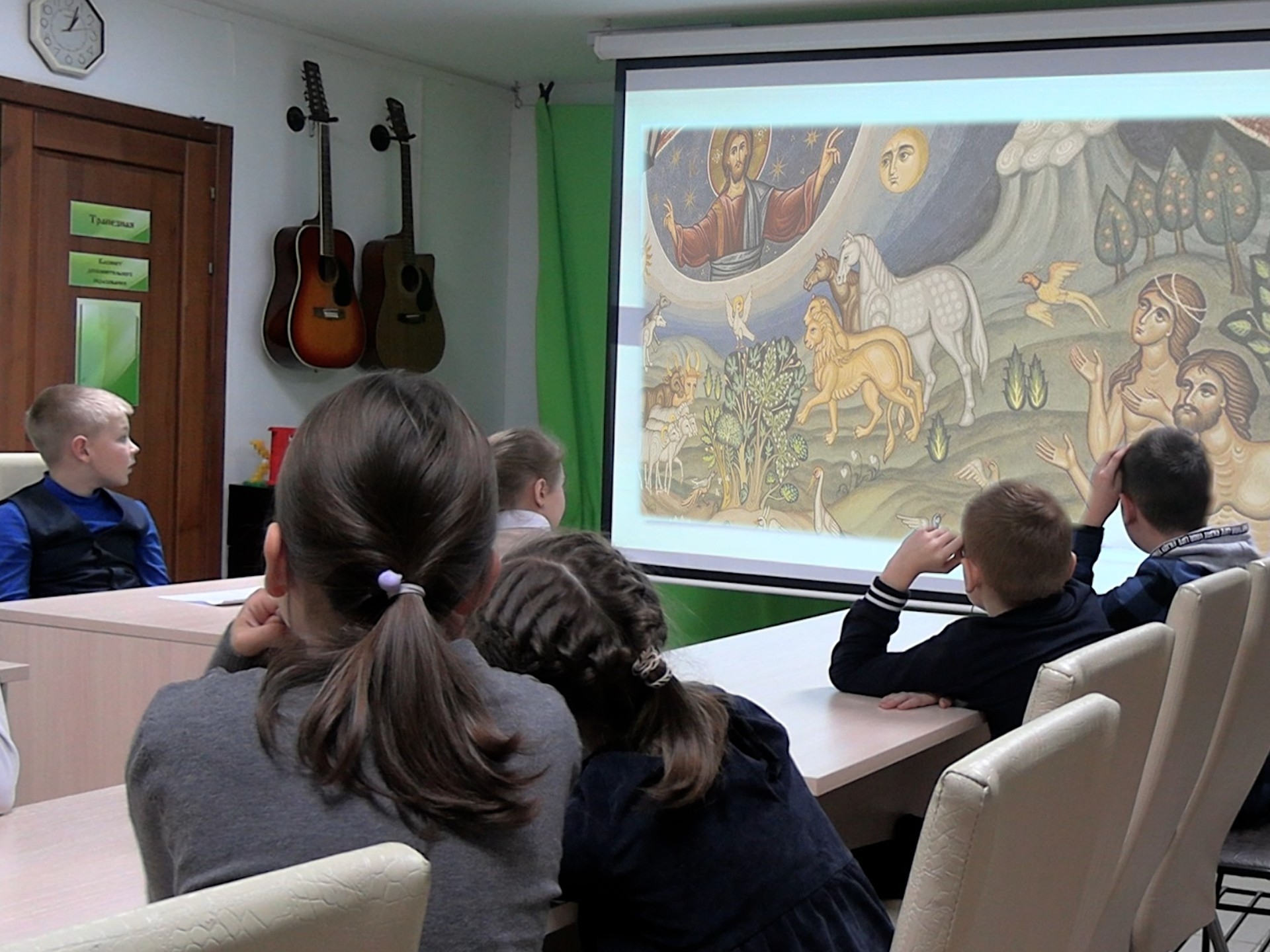 На занятии дети узнали, как звали самого первого человека, и как Бог дал заповедь не вкушать плодов с древа познания добра и зла и почему райская жизнь закончилась для первых людей. Ребята размышляли над важной темой - в чем проявляется Образ и Подобие Божие в человеке, над словами Бога "Я предлагаю вам путь жизни и путь смерти", а также над тем, как важно направлять силы души на развитие и укрепление в себе Образа Божия. Нужно учиться направлять свою свободную волю на добрые дела, уподобляясь Богу в святости жизни!