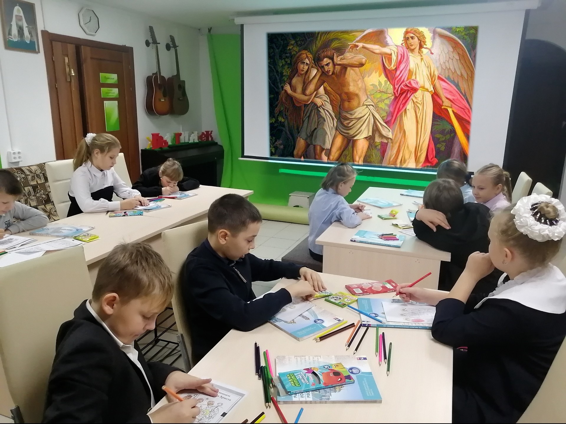 На занятии дети узнали, какое имя придумал Адам для своей жены, чем расстройство отличается от обиды и как мир был спасён благодаря одному кораблю.