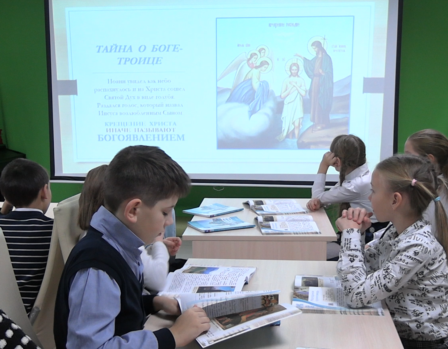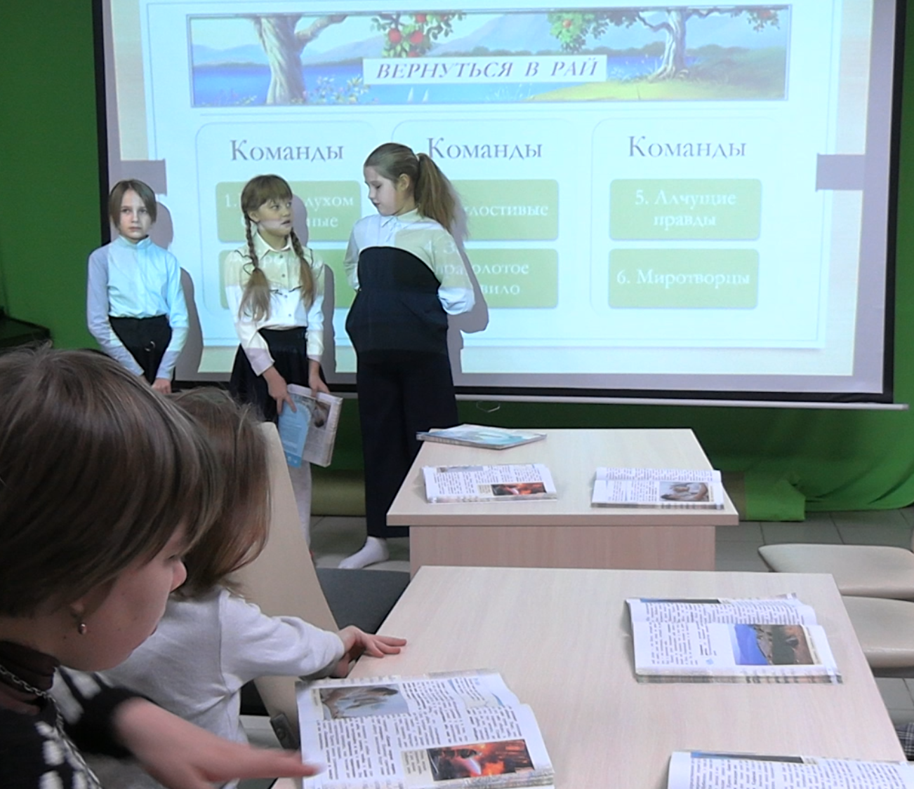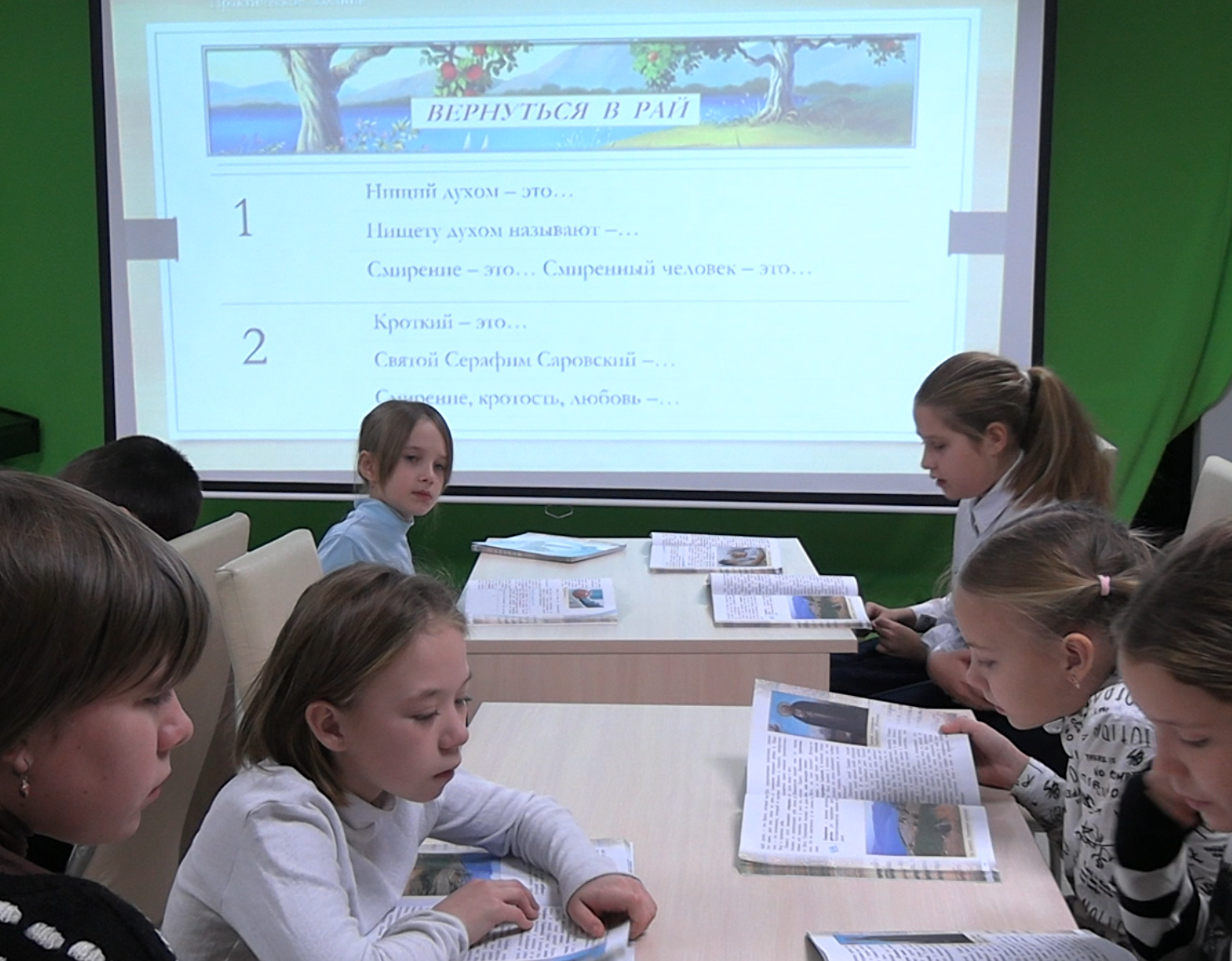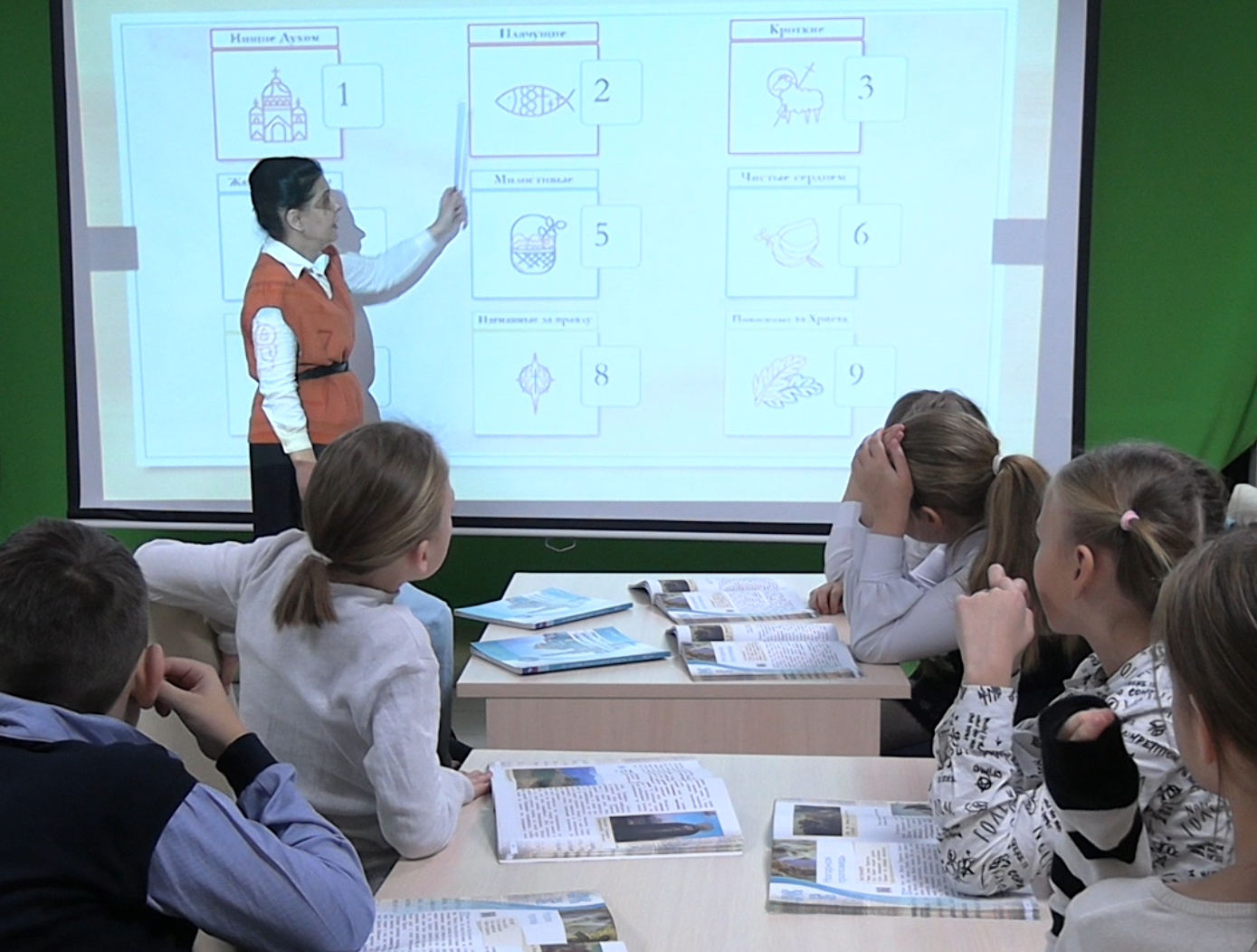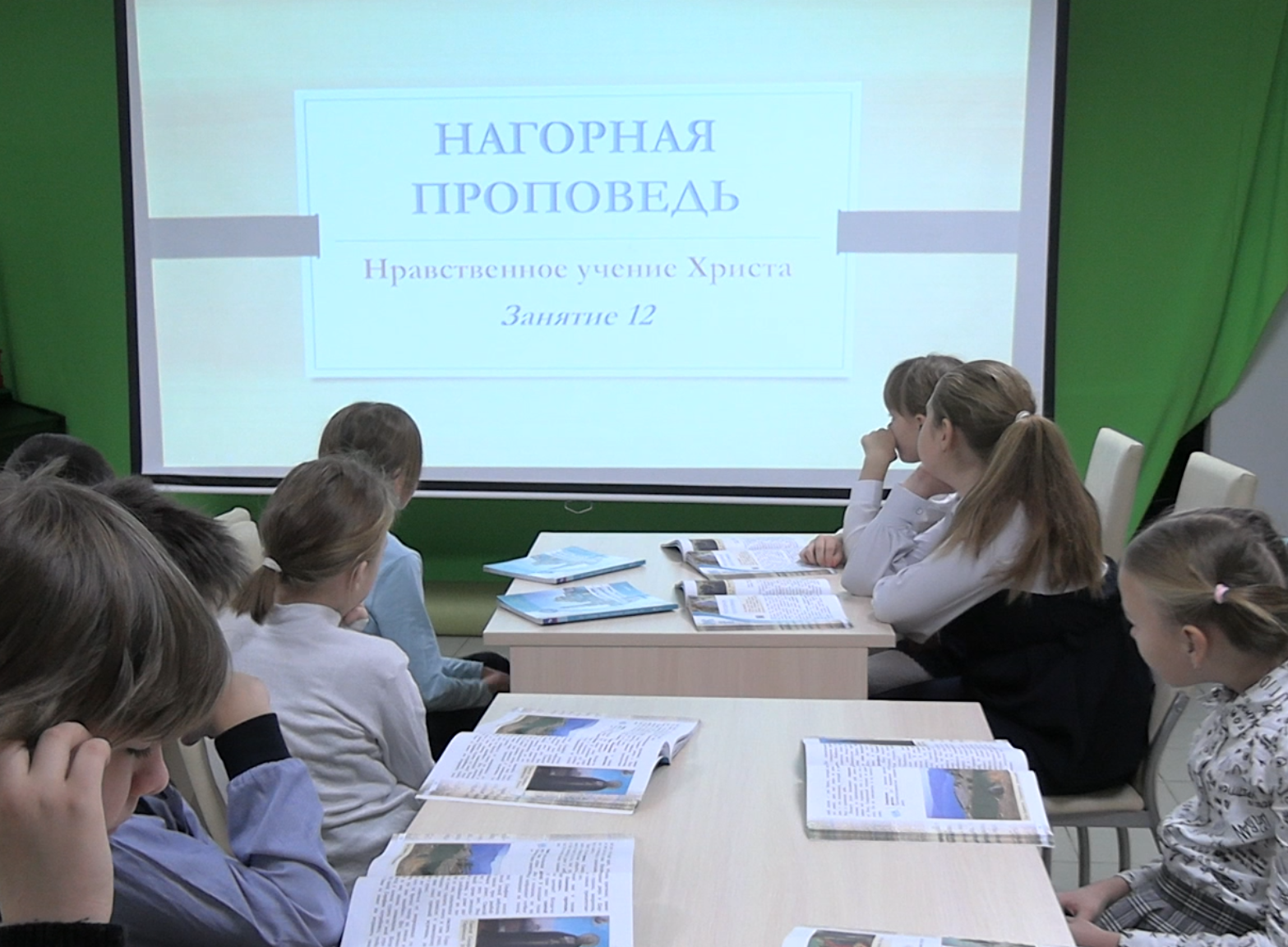 На занятии дети узнали о нравственном учении Христа - Нагорной проповеди и Заповедях блаженства, о том, кто такие нищие духи, кого называют кроткими, и может ли насытить правда?