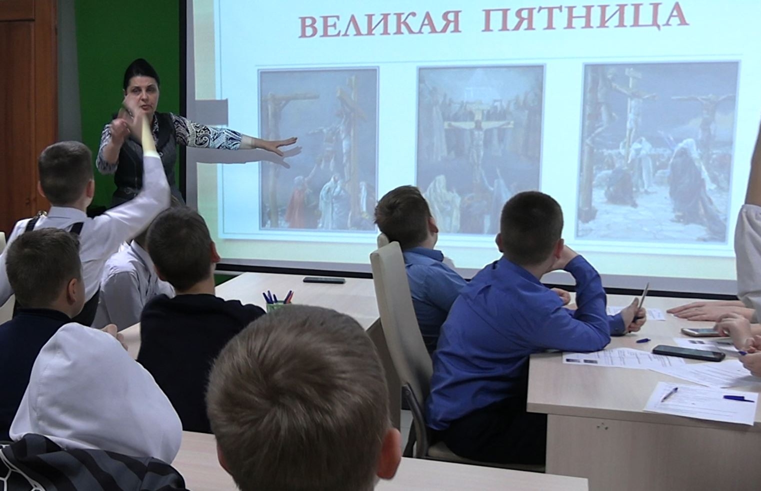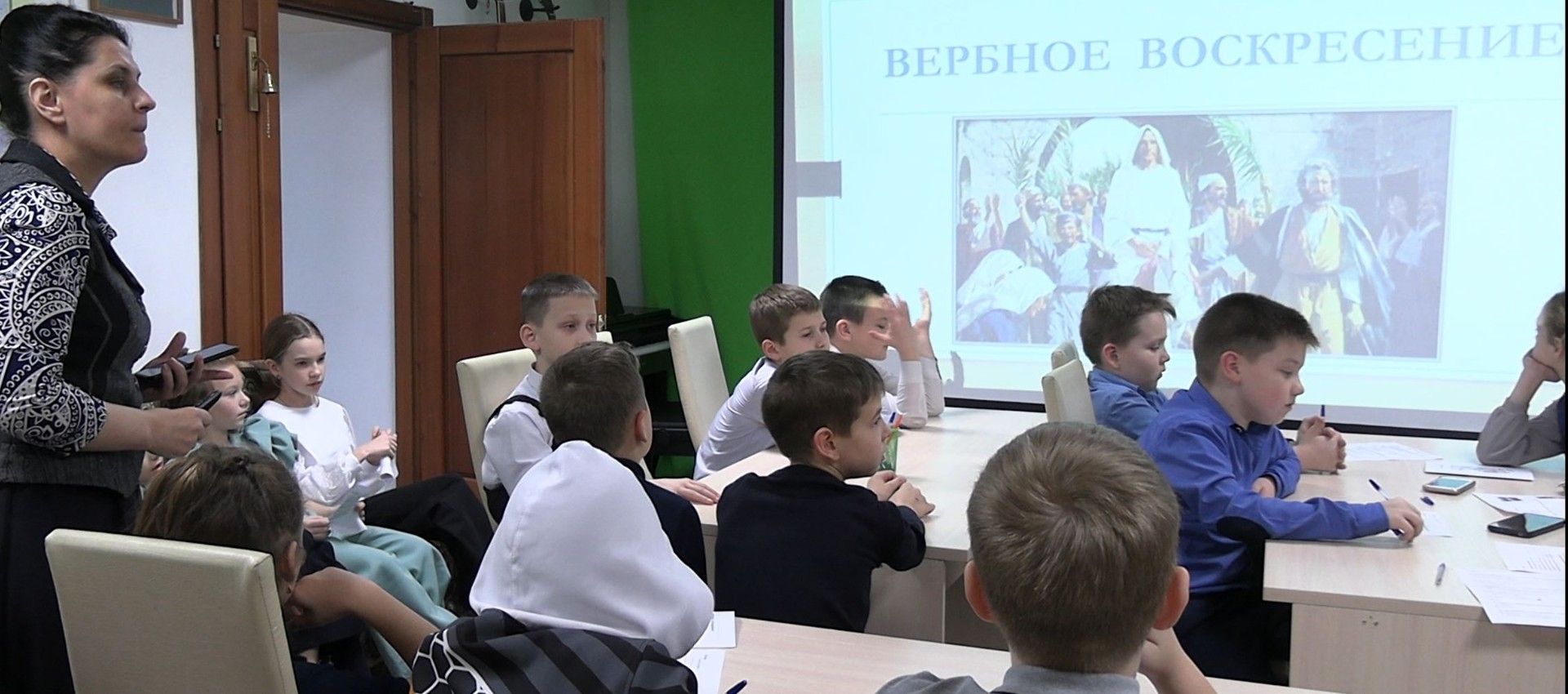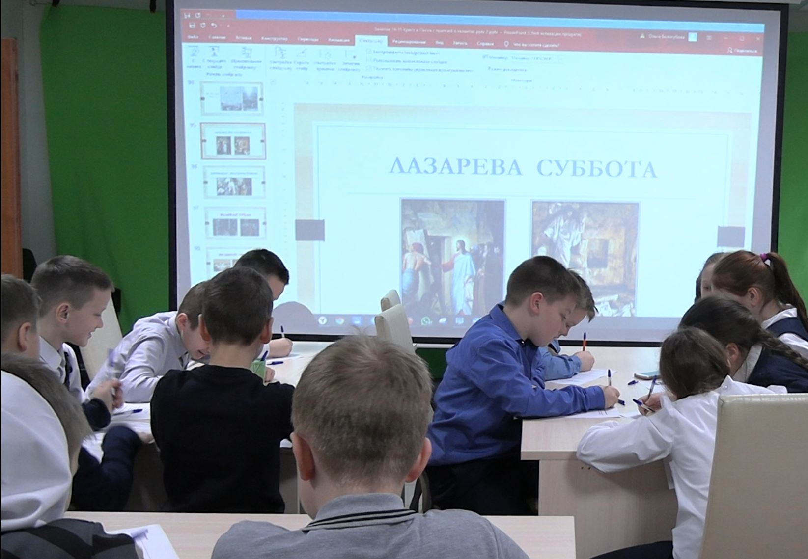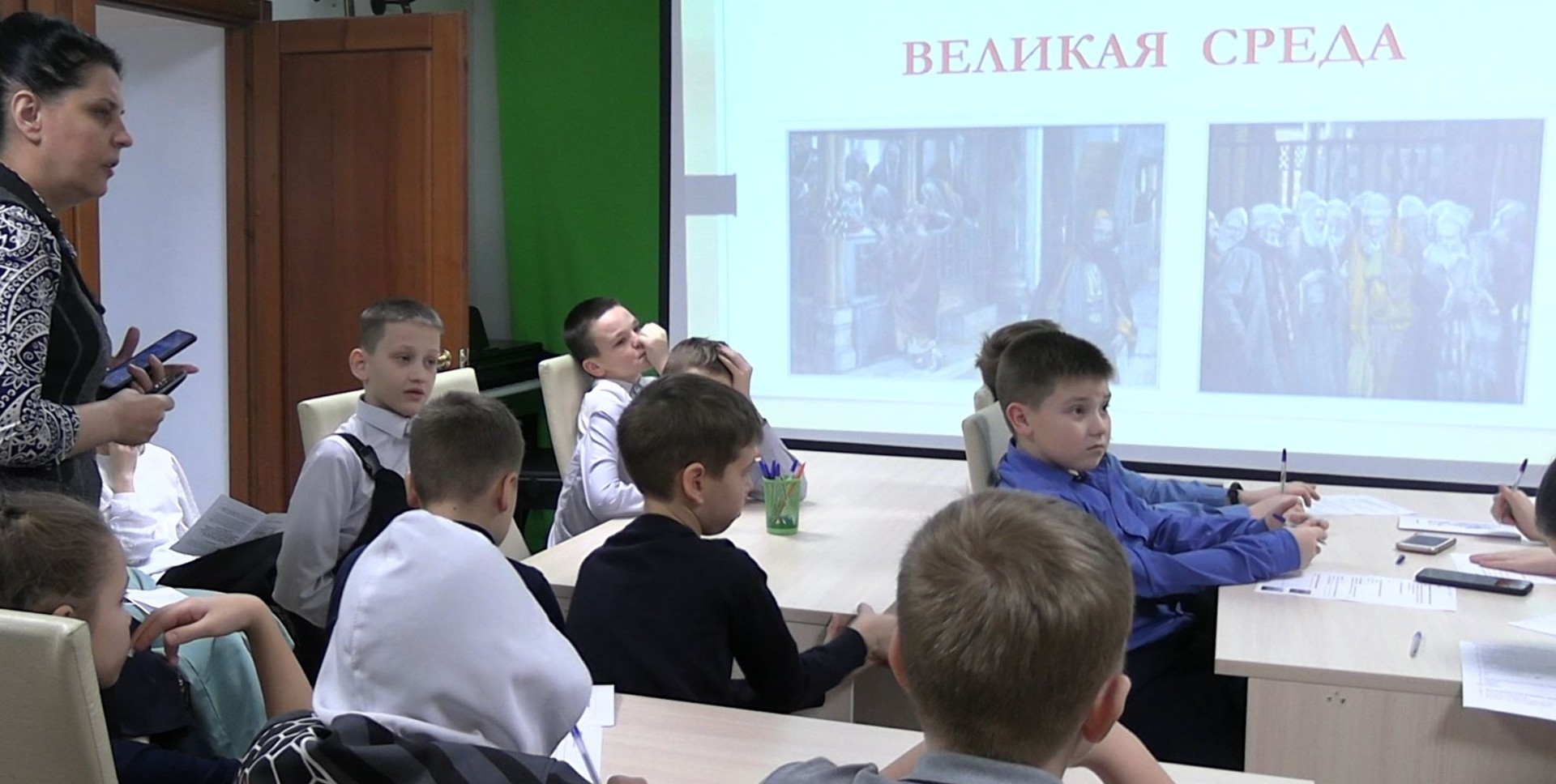 Ребята работали с презентацией по теме занятия и выполняли практическое задание на усвоение хронологической последовательности Великих дней Страстной Седмицы.