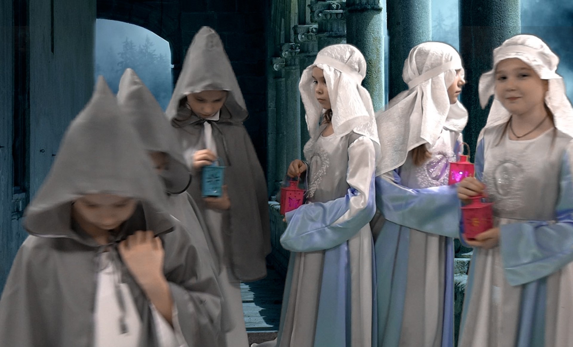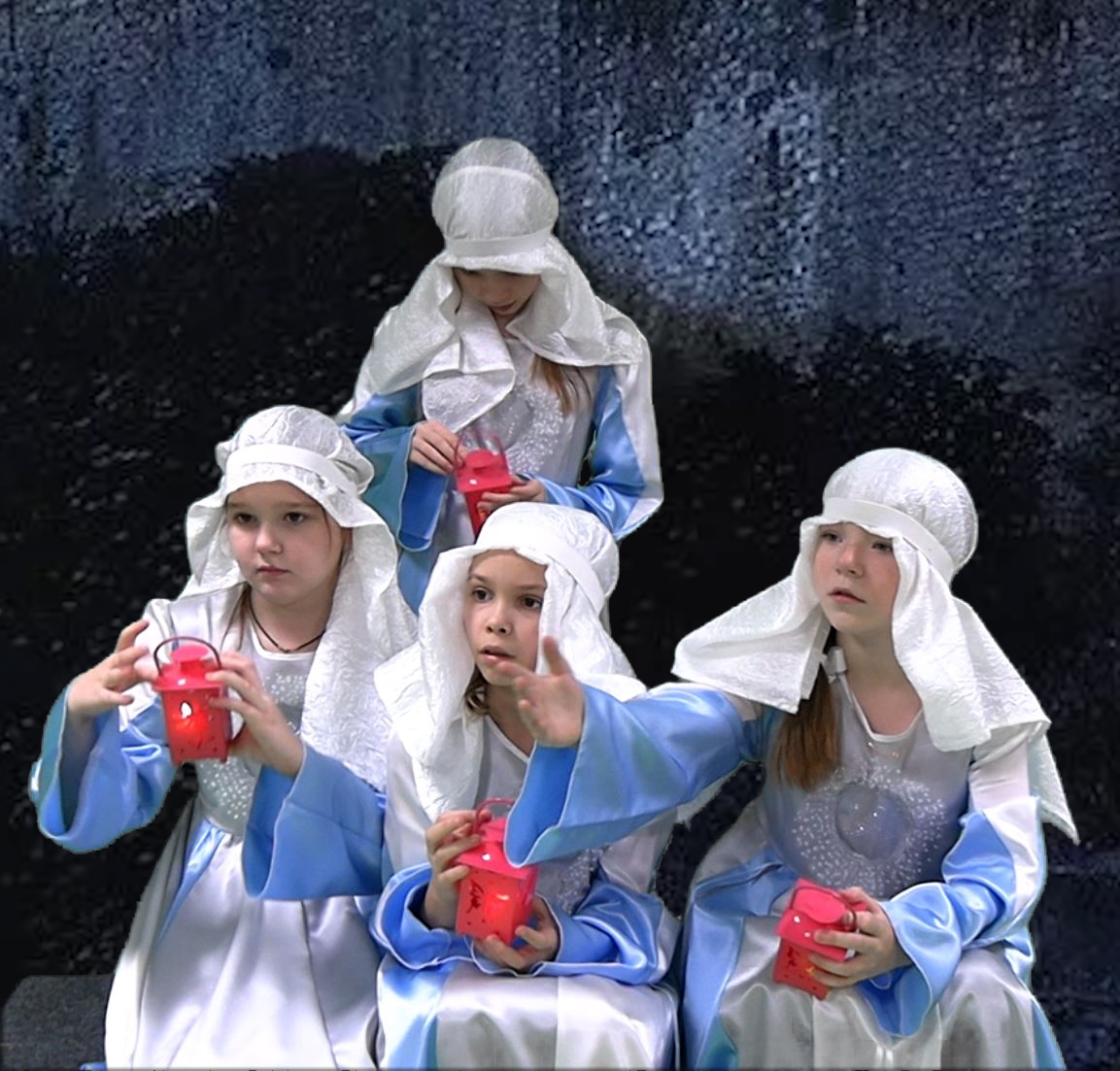 Роль девушек из притчи исполнили Даша Кунгурцева, Шаламова Виталина, Шаламова Екатерина, Федорова Настя, Сверчкова Дарья, Евстишина КатяСыркина Валерия.