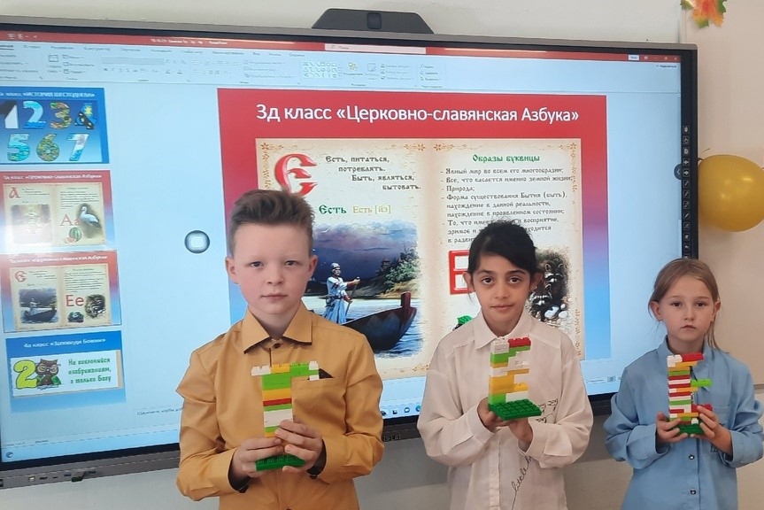 На занятии дети конструировали церковно славянские буквы