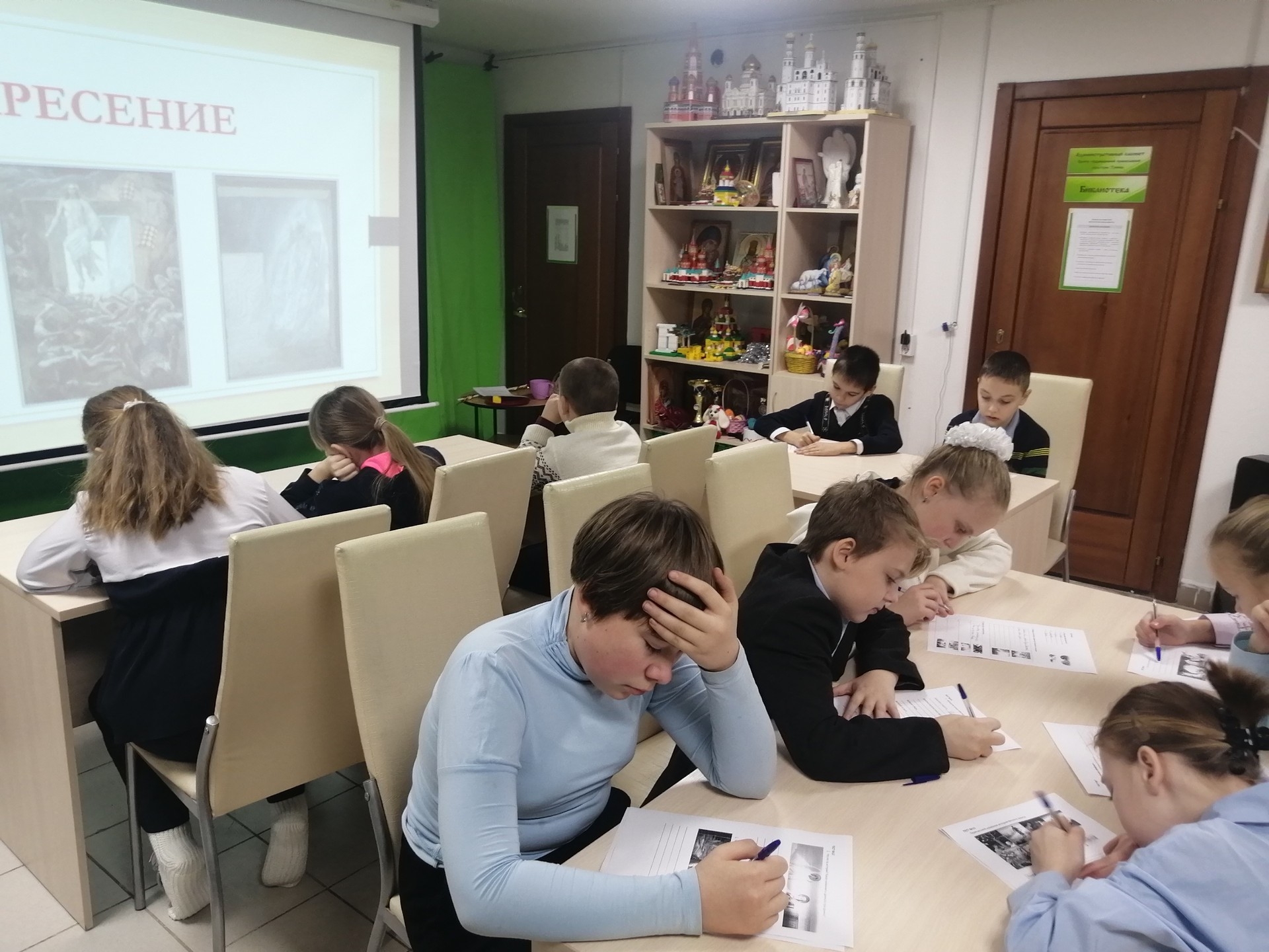 На занятии дети узнали как Христос оказался сильнее смерти, что произошло с Христом до Воскресения и что случилось в воскресенье, почему христиане радуются на Пасху и как празднуют Светлое Христово Воскресение!