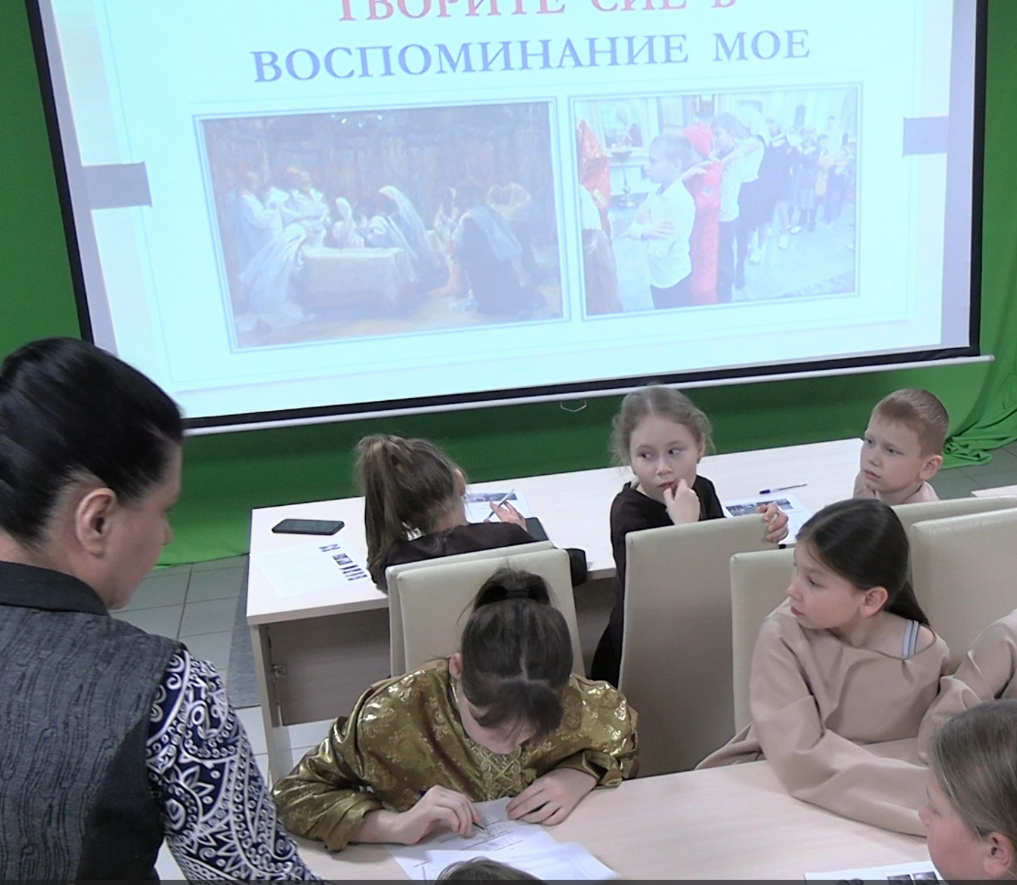 На занятии дети узнали о Великих Днях Страстной седмицы, о предательстве Иуды, о Тайной Вечере - последней проповеди Христа, которая прошла в Великий Четверг и где Христос заповедал совершать Евхаристию в Его воспоминание, о Крестном пути Христа, о Его прощении всех обидчиков, о Заповеди Христа любить друг друга и прощать своих врагов. Также ребята познакомились с традициями празднования праздника Пасхи в храме Святой Троицы, с Таинством Евхаристии, в котором принимают участие ученики Центра "Троица".