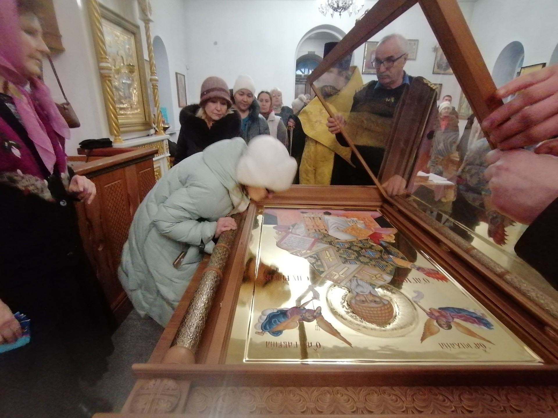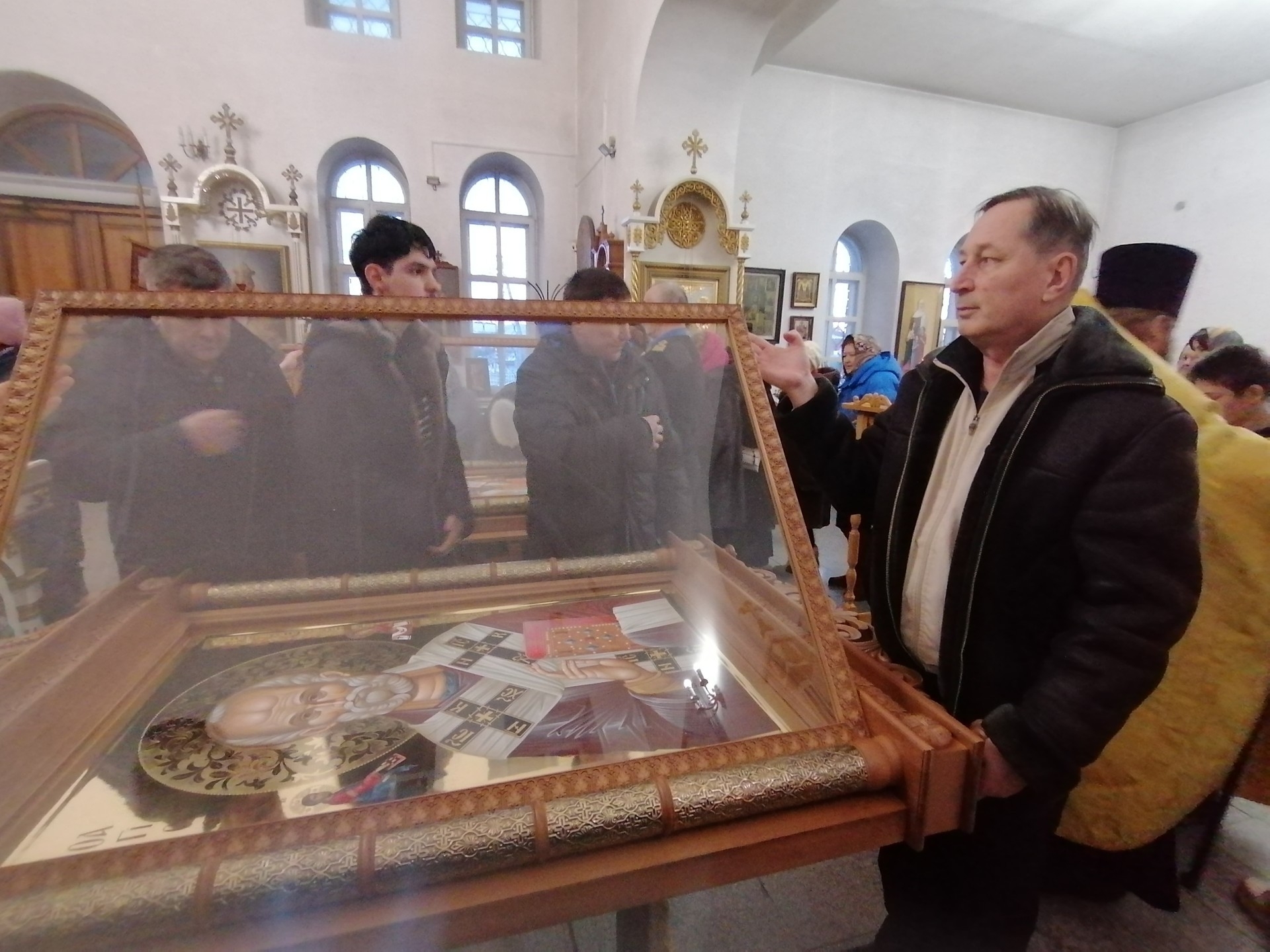 Приходом бала организована торжественная встреча. Колокольный звон, чтение акафиста, усердная совместная теплая молитва наполнили храм. Иконы написаны на святой Афонской земле, освящены в городе Бари (Италия) и подарены строителями храма святителя Николая села Антропово.