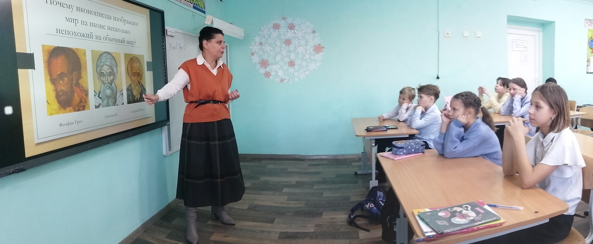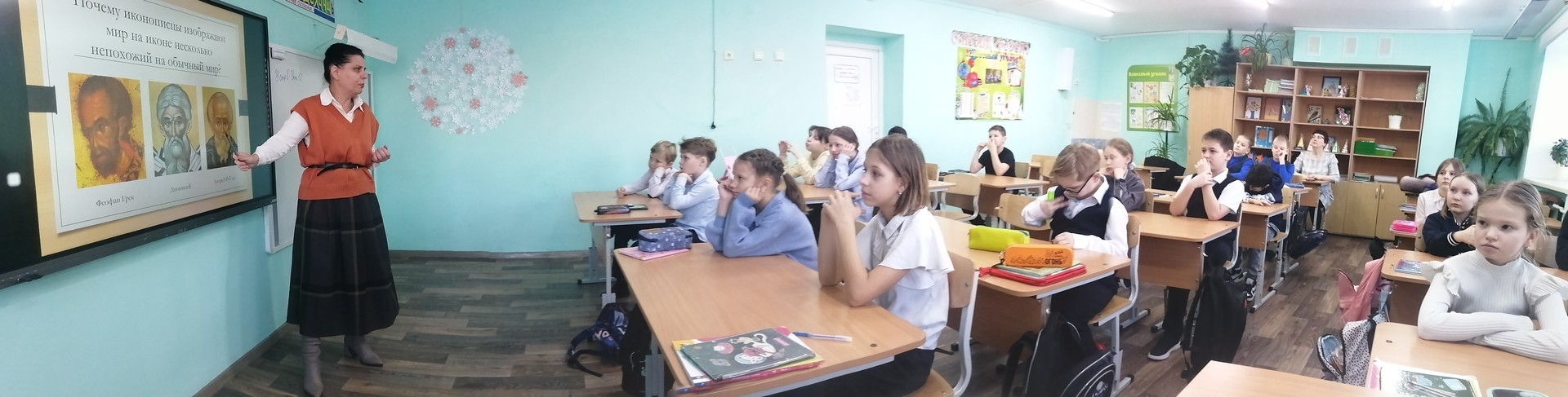 На занятии дети познакомились с темой "Икона". Узнали чем отличается икона от картины, как можно изобразить невидимое и в чем отличие между поклонением и почитанием икон. Ребятам было интересно узнать, что в храмах богослужение ведется на церковно-славянском языке, который является чистым, не "загрязненным" никаким сквернословием. Это святой язык церковного богослужения, который содержит в себе мудрое послание к людям: если ты изучил буквы, используй свои знания с умом — пусть твои слова будут добрыми и твёрдыми, ответственными, а не пустыми.
