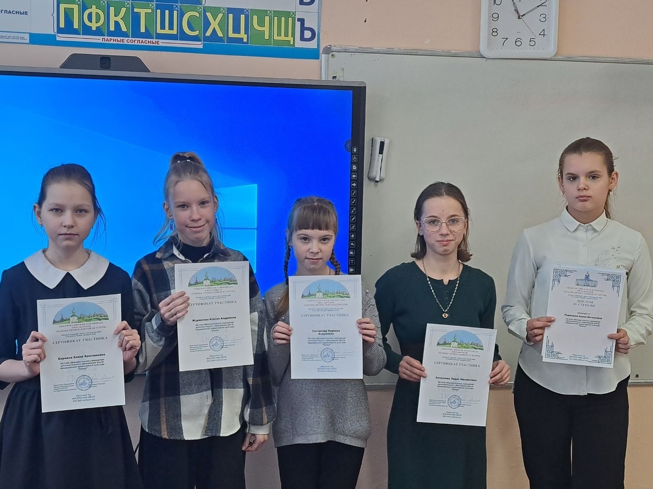 Участники олимпиады: Полуэктов Савелий, Крумина Арина, Фомина Юлия, Степанов Тимофей, Санникова Варвара, Журавлева Ксения, Бармина Елена, Богданова Лидия, Павлова Елизавета, Гайсина Зилия, Люлина Лариса, Жук Матвей, Нургатина Вероника, Шауфлер Виктория, Петров Ярослав, Алексеева Анна, Коврижных Юлия, Ларионова Ксения, Юст Ева, Павлова Евгения, Санникова Анна, Комаров Максим, Волков Иван, Новоженова Анастасия.