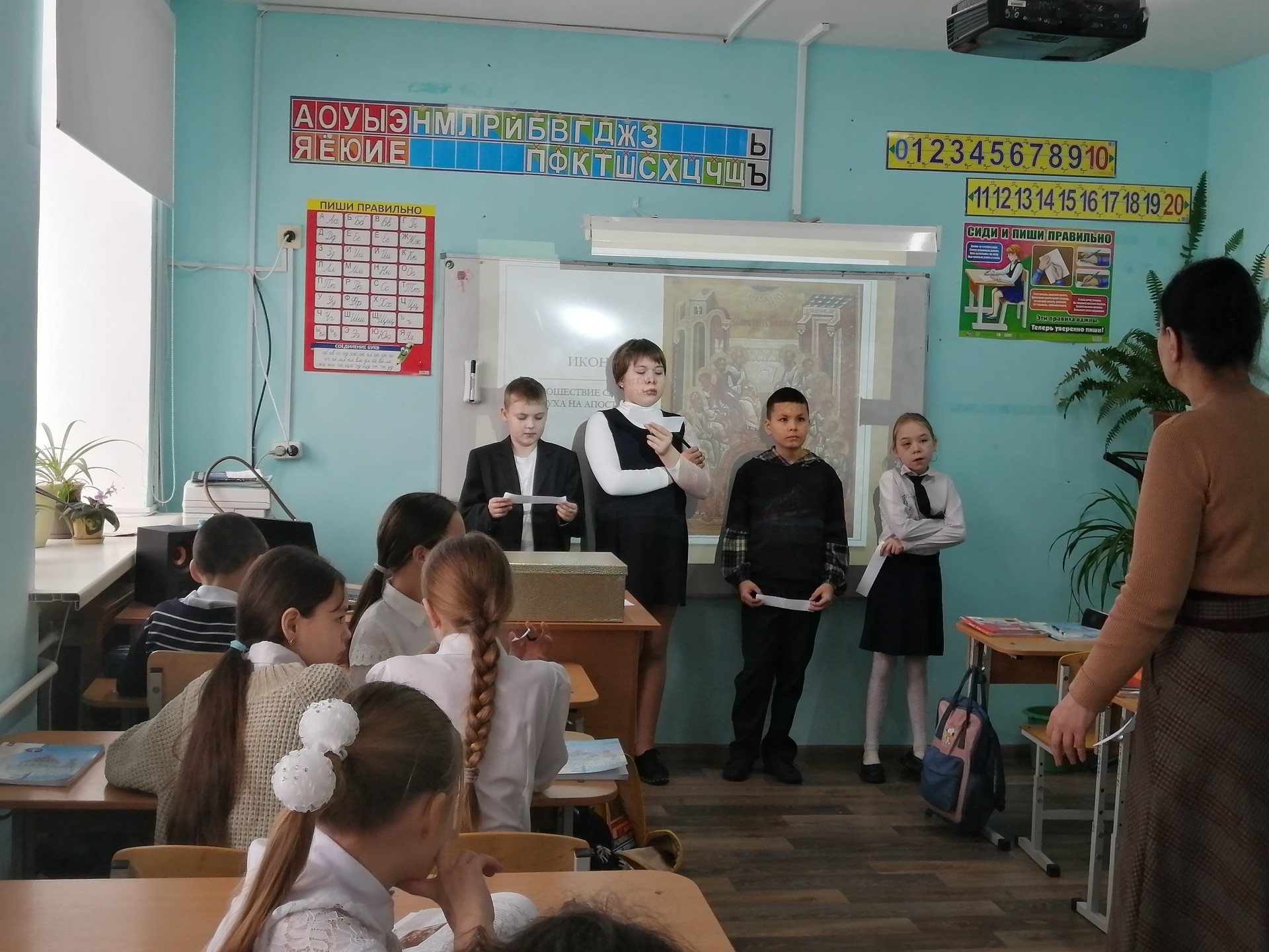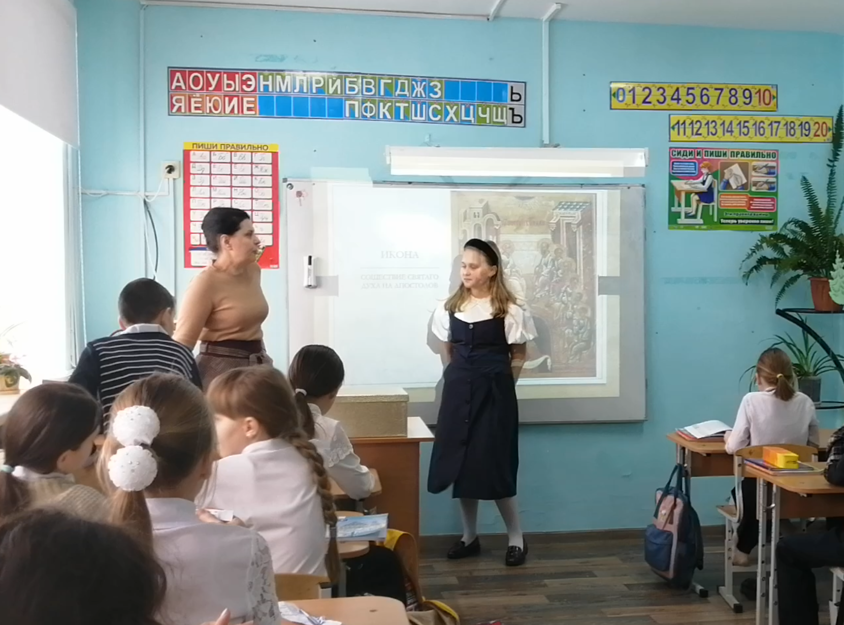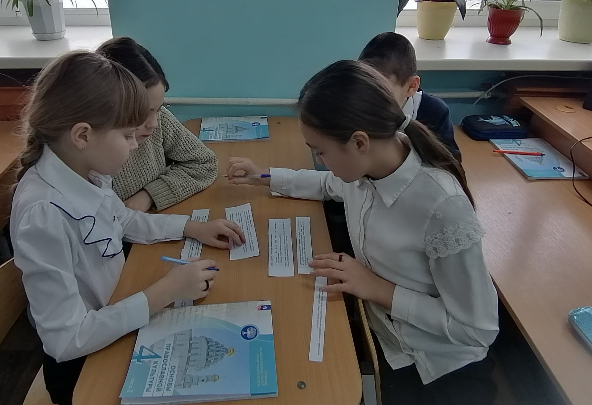Затем ребята выполняли практические задания по теме "Что такое Церковь". Одним заданием был "Устный журнал", когда ребята прочитав информацию по заданной теме, усвоив главные мысли, поделились ими с остальными одноклассниками, опираясь на мини-сценарий. Второе задание мини-проект по заданной теме, где ребята должны были выстроить логичный рассказ о Церкви, на основе подборки текстовых фрагментов и самостоятельно определенной последовательности выступления каждого участника в логической последовательности. Слушатели должны были ответить на вопросы после прослушанного выступления ребят.